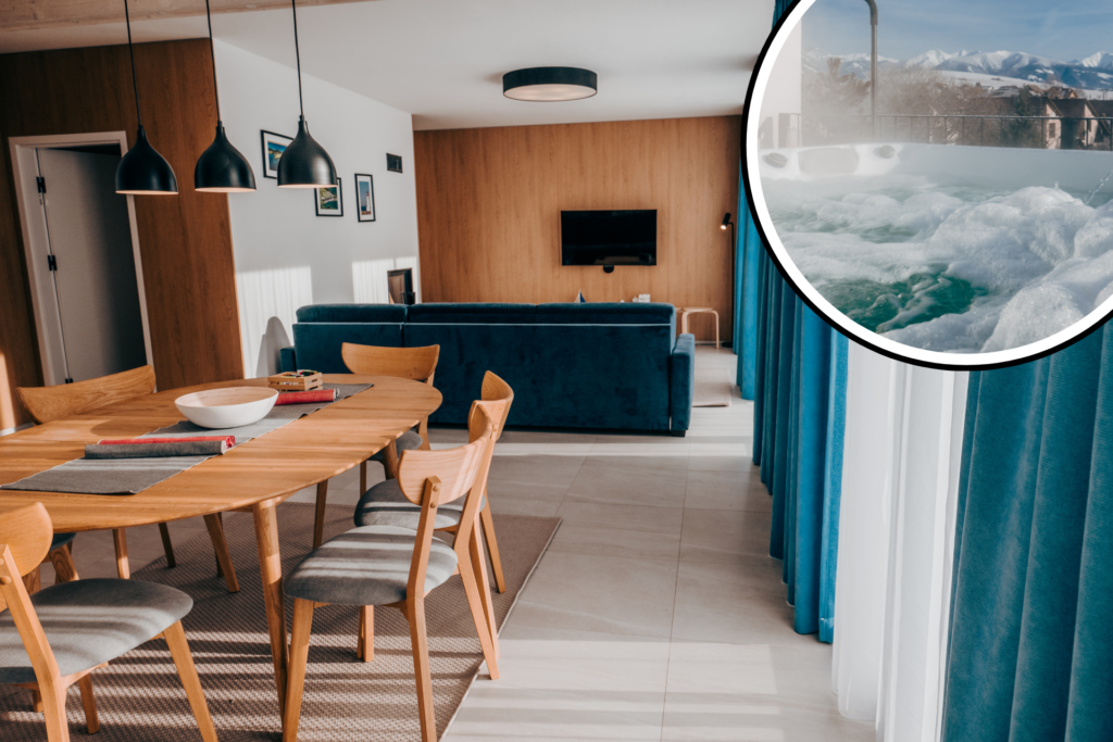 Na terase s vonkajšou vírivkou sa vám naskytne úchvatný výhľad na Liptov, Tatry a Liptovskú Maru, čo vytvára dokonalé prostredie na oddych. Prémiové prvky, ako klimatizácia a moderné vybavenie, vám zaistia najvyšší komfort. Neváhajte a rezervujte si svoj luxus medzi horami a vodou!